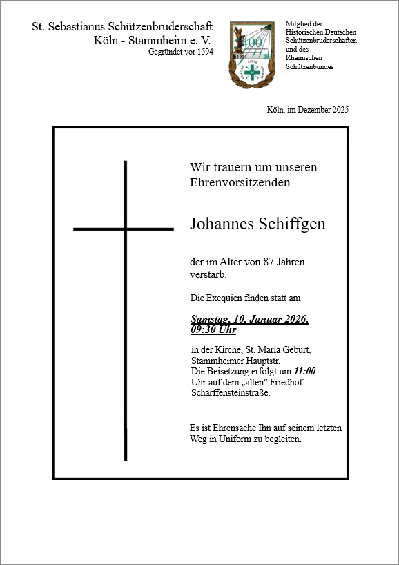 liebe Freunde und Förderer der St. Sebastianus Schützenbruderschaft Köln-Stammheim,